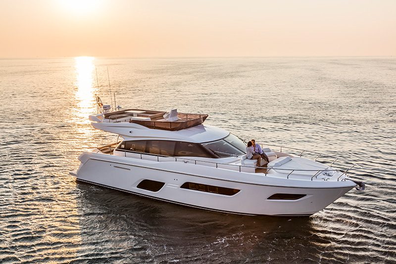 Riva – FY550 Yacht. 2017 kam die Ferretti-Gruppe mit 8 Yachten zwischen 8 und 33 Metern zu der Dubai internationalen Boat Show. Zusammen mit Art Marine dem exklusiven Händler, der Ferretti Gruppe im Nahen Osten, wurden die neusten Modelle präsentiert.