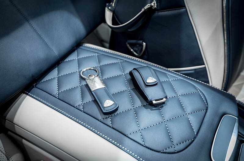 Das Schlüsseletui „THE COCOON I“ ist auf die Form des Fahrzeug-Schlüssels abgestimmt und besteht aus Fahrzeugleder im passenden Farbton. Den Druckknopf ziert ein Maybach Doppel-M-Logo.