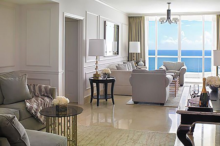 Die Grand Deluxe Suite liegt auf Meeresseite mit einem unvergesslichen Blick auf den Atlantik, hat drei Schlafzimmer befindet sich im 32. Stock des mediterranen Resort Towers und ist ab 6.500 US-Dollar pro Nacht zu haben. Ab 3 Übernachten gibt es für einen Tag, einen Rolls-Royce Ghost dazu, mit dem Luxusauto, kann man dann Miami auf stillvolle Weiße erkunden. Dieses Angebot gilt nur bis 30.12.2019.
