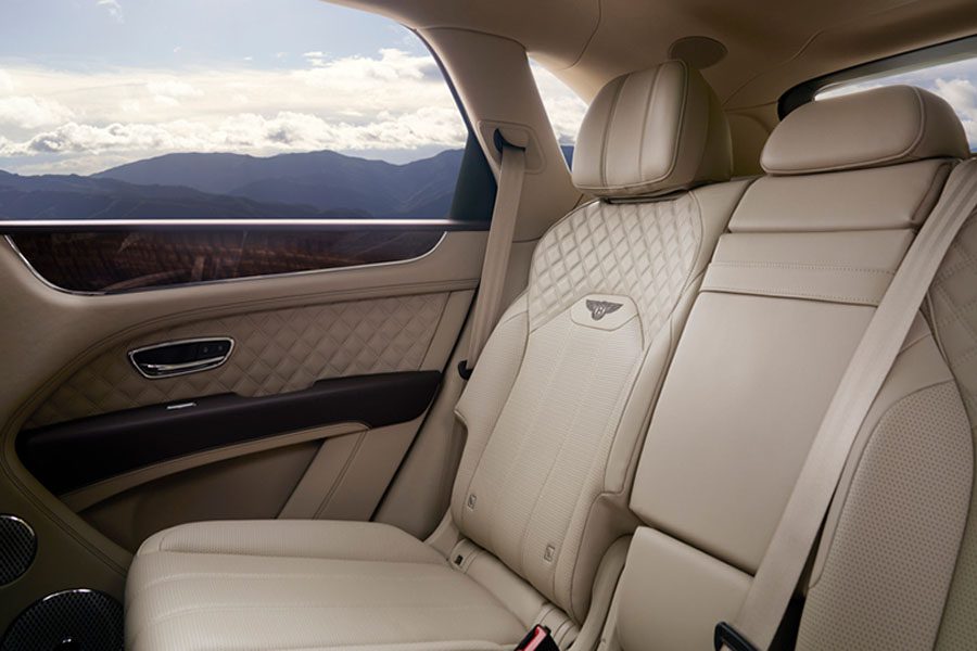 Weniger auffallend im Inneren sind das neue Design des Lenkrads, der Türverkleidung und der Sitze, aber die Passagiere, die vorne sitzen, werden einen größeren Neigungswinkel spüren können. Der Bentayga mit fünf Sitzplätzen bietet jetzt auch belüftete Rücksitze an, die früher nur in der Vier-Sitz-Anordnung angeboten wurden. Die neue Anordnung der Sitze ist auch komfortabler, mit bis zu 3,93 Zoll zusätzlicher Kniefreiheit als zuvor. Auch wird der Bentayga weiterhin mit einer dritten Sitzreihe angeboten, wodurch sich die Gesamtbelegung auf sieben Sitze erhöht.