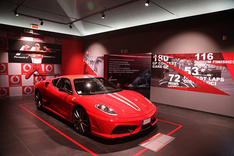 In der Sala delle Vittorie werden einige der wichtigsten Ferrari-Einsitzer gezeigt, die er in seinen elf Jahren mit der Scuderia fuhr. Vom F310 von 1996, mit dem Schumacher in der ersten Saison mit dem Cavallino Rampante drei GPs gewann, bis zum F399, dank dem das langlebigste Team in der Geschichte der Formel 1 mit der Konstrukteursmeisterschaft eine einmalige Siegesserie eröffnen konnte. Gezeigt wird auch der F1-2000 der legendären „Alba Rossa“ (Morgenröte), als Michael in Suzuka 21 Jahre nach Jody Scheckter erstmals wieder den Weltmeistertitel für Ferrari holte. Nicht fehlen dürfen auch der F2002 und der F2004, die Fahrzeuge seiner Rekorde, und der 248 F1 von 2006, mit dem er in China seinen letzten Sieg errang, den 72. mit Ferrari.