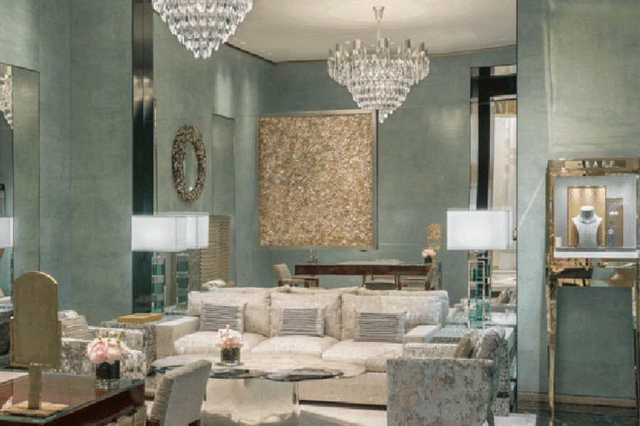 Die neue Boutique von Graff umfasst ca. 4.000 Quadratmeter. Das Ladengeschäft wurde mit größter Leidenschaft von Peter Marino dekoriert. Der US-amerikanische Architekt, Innenarchitekt und Kunstsammler steckte sein ganzes Können, in die Inneneinrichtung und dekorierte den Laden mit schimmernden Oberflächen, goldstaubige Marmorfußböden, silbrig-samtige Polstermöbel, funkelnde Bergkristalle, mit Wänden, die sich spiegeln und garantiert Versailles würdig sind. Natürlich sind auch die Glasvitrinen einzigartig, in denen die teuren Schmuckstücke zur Ansicht aufbewahrt werden.