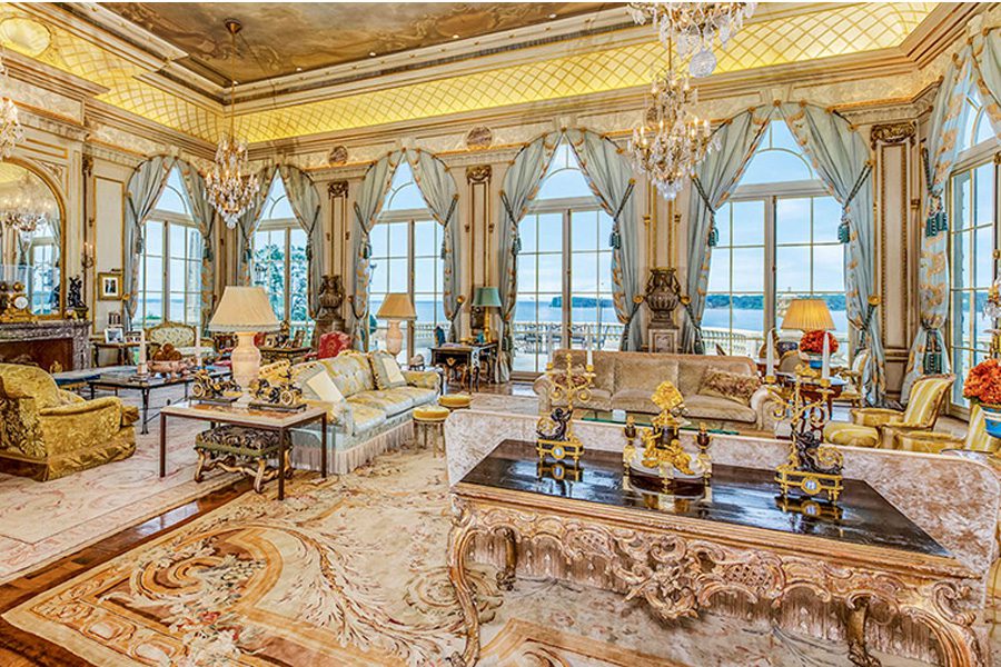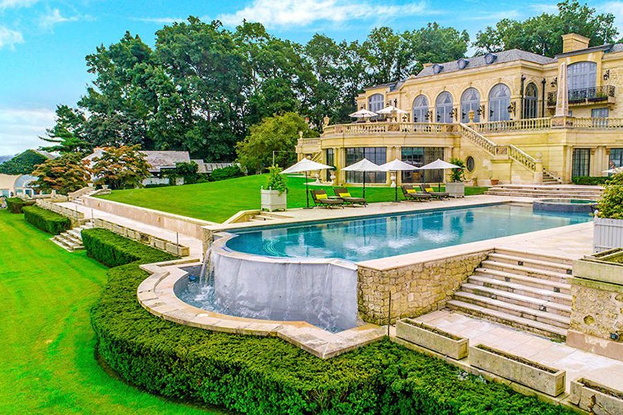 Das Herrenhaus kostet rund 32 Millionen Euro und ist zusammen mit dem gesamten Grundstück 2.500 Quadratmeter groß. Die Villa ist sowohl von innen wie von außen inspiriert von dem 18. Jahrhundert, Wohnzimmer und Gartenanlage orientieren sich an dem Schloss in Versailles. Obwohl die Villa ein Kinosaal hat, erlebt man einen mondänen Lebensstil in dieser Traumvilla in New York.