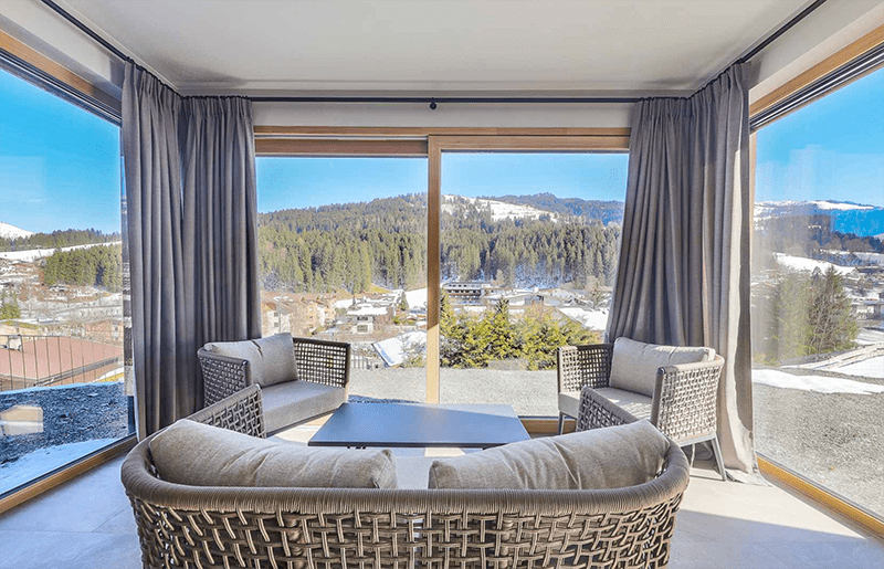 Das Chalet ist ein gelungener Mix aus Tiroler Bauweise und hochmoderner Architektur, welche sich perfekt in die Landschaft einfügt.