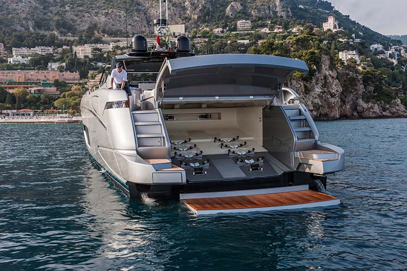Riva liefert, wie man es gewohnt ist, jeden erdenklichen Komfort, die eine Yacht nur bieten kann. So gibt es den puren Luxus unter Deck und auch das Gleiten auf den Gewässern macht mit 2400 PS so richtig Spaß. Die Florida 88 bietet im Heck eine Jetski-Garage, da der Spaß auch außerhalb der eleganten Yacht nicht fehlen darf. Mit fast 40 Knoten Topspeed, sollte das 3-Wetter Taft, auf der Yacht jedoch nicht fehlen.
