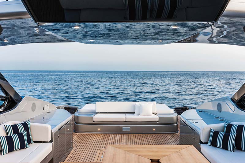 Die Luxusyacht ist 27 Meter lang und somit eine der Größten offenen Yachten mit einem automatischen Dach, das sich von selbst verschließt. Die luxuriöse Yacht, kostet rund 5 Millionen Euro.