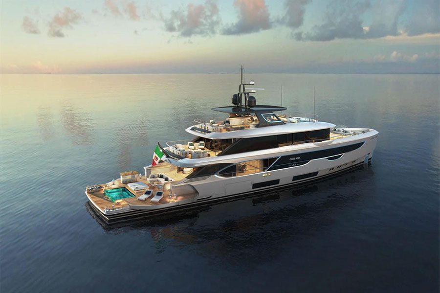 Oasis 40 M ist die Evolution der Benetti-DNA. Das Projekt interpretiert die Nutzung von Innen- und Außenräumen in einer zeitgemäßen, zukunftsorientierten Weise neu, ausgehend von der Idee, den Eigner in einer sehr informellen Nutzung des Bootes wieder mit dem Meer zu verbinden.