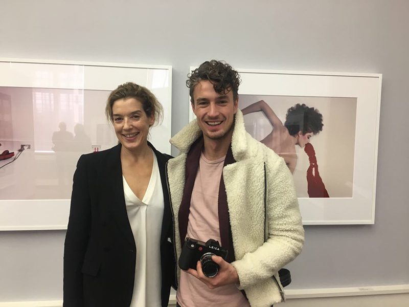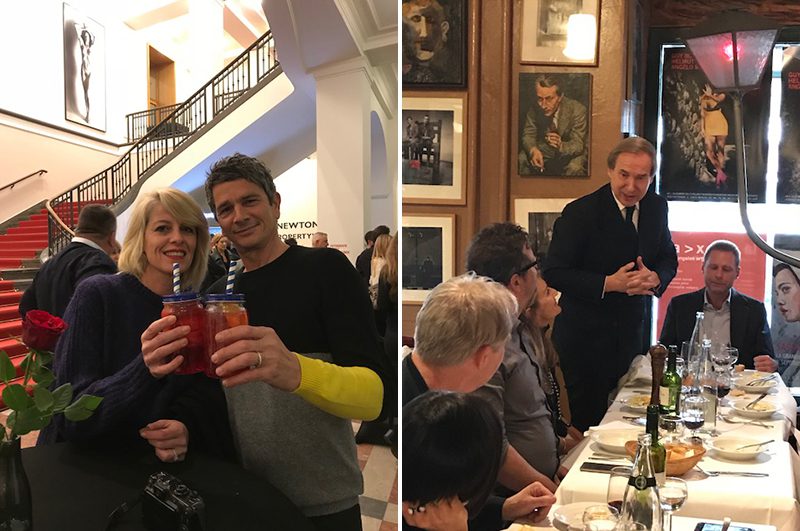 Um 19.00 wurden schließlich die Türen für den VIP-Empfang geöffnet, zu dem einerseits die Stiftung, aber auch der Sohn Bourdins, die ehemalige Muse Nicolle Meyer und die Kuratorin Verthime eingeladen hatten. Eine internationale „Crowd“ von Fotoliebhabern, Freunden, Sammlern, Kooperationspartnern und Fotografenkollegen versammelte sich schnell in der Lobby, die mit ihrem Blick auf Newtons ikonische Big Nudes auch immer als beliebter Photospot dient. Unter den Gästen begrüßten wir die Münchner Galeristen Kathrin Köhler und Joachim Schmeisser , die Berliner Kollegin Steffi Schulze mit Mann Benjamin Jäger und den Fotografen Maxime Ballesteros, begleitet von seiner Designer-Freundin Jen Gilpin. Die illustre Runde ließ sich von Kurator Matthias Harder durch die Ausstellungen im ersten Stock führen und kostete den