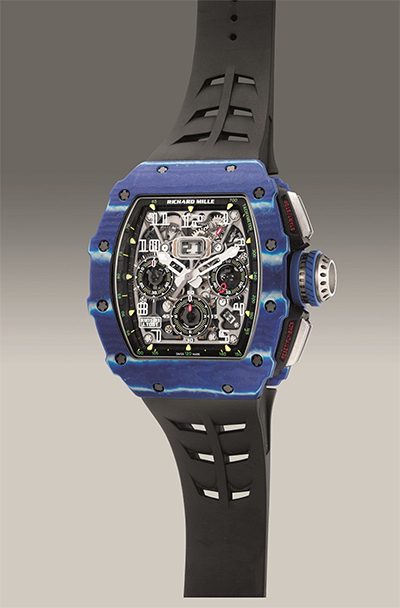 Reference RM11-03 J.Todt, limited edition blue Quartz TPT and carbon flyback chronograph wristwatch, numbered 46 of a limited edition of 150 pieces. Circa 2018. US$354,750.